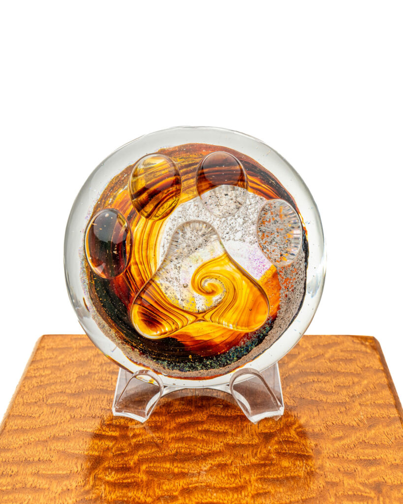 We return any unused ashes with your memorials, unless you would like them respectfully spread in Washington’s Puget Sound from our boat. Christina and I would be very honored to spread your loved ones’ extra ashes about a mile and a half behind this beautiful sunset picture of our Aqua Burgundy Amber Gold Starfish. You will also receive a certificate including the coordinates for this complimentary service.